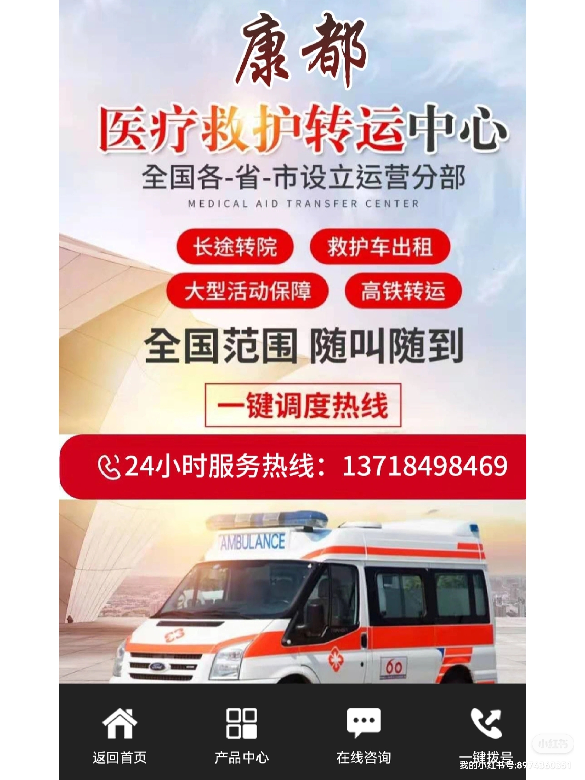 康乐县120救护车长途转运告诉您救护车是一种在时间前提下为病情严重的伤者提供医疗保障的汽车,可以帮助那些缺乏运输或危急从现场转移的病人。特殊类型的救护机构,如医院机场,在紧急情况下提供旅行或度假,远离医院。养老院或护理院的老年人在提供长期护理时经常使用救护车。救护车的应用:一、救护车专车,专人负责,出车人员穿工作服。二、救护车上的医疗器械每次接送任务完成后,应进行检查、补充。三、保持救护车清洁,每次